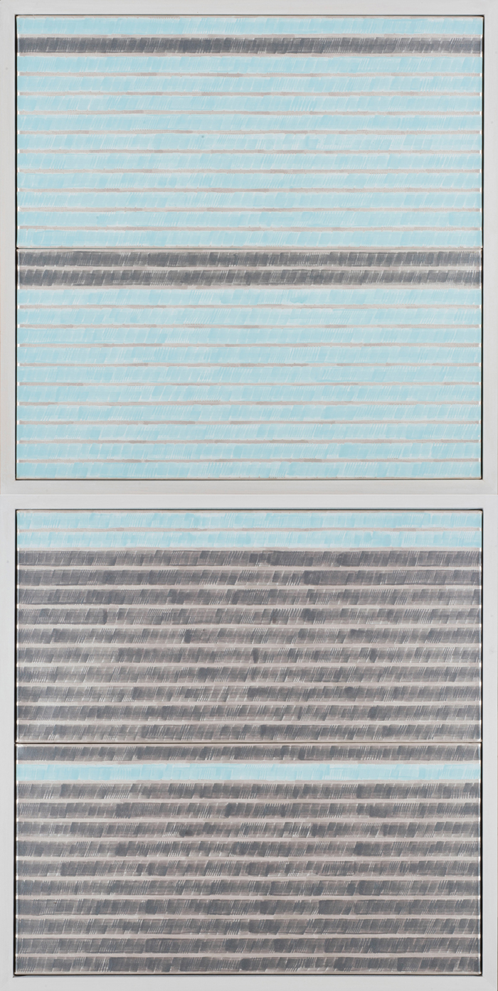 Dimensions: TWO 26" square panels, framed separately 26 w x 52" h x 2.5" d